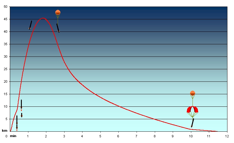 jet-stream and a main parachute which deploys at 800m (2400 ft) altitude and guides the H10 down to a gentle